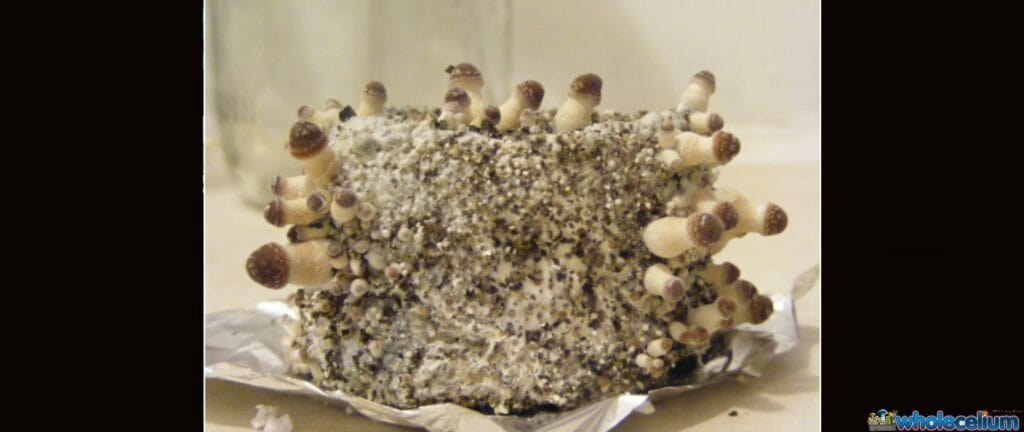 Når disse små svampe dukker op, betyder det, at det er tid til at tage din myceliumkage ud af glasset.
