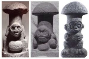 I perioden fra ca. 1.000 til 500 f.Kr. var skulpturer og kunstværker, der forestillede svampe og deres hætter, meget populære, især i Central- og Sydamerika. De havde religiøse konnotationer, men vi kan kun spekulere i, hvad disse mystiske billeder og skulpturer egentlig betød for dem. Svampehatte med store ansigter og små kroppe blev udskåret i mange forskellige former, og tegningerne lænede sig helt klart op ad det psykedeliske.